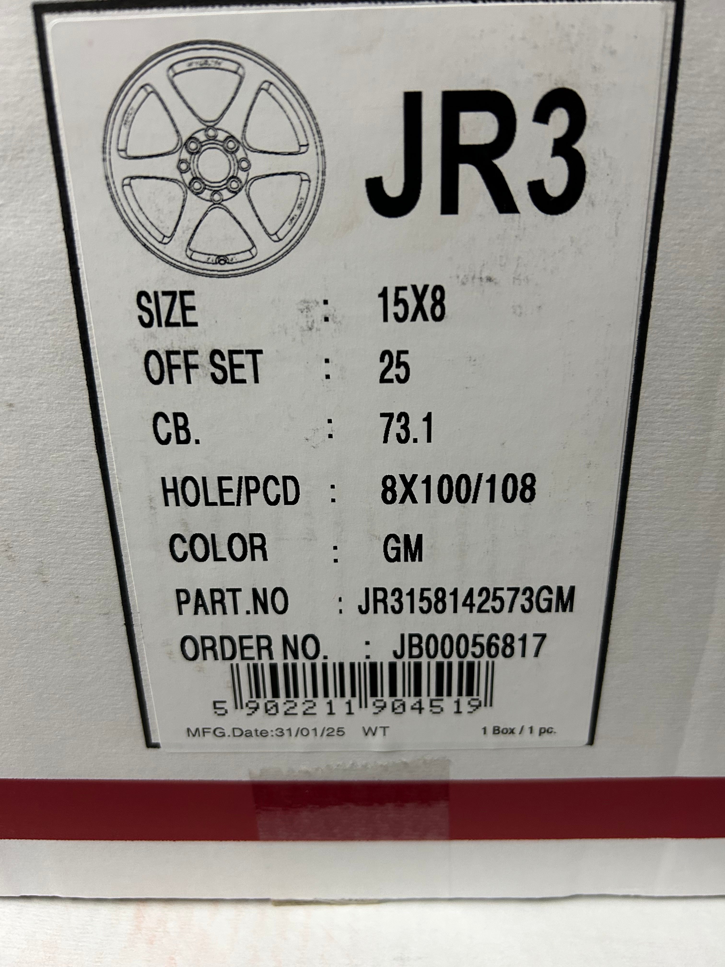Japan Racing JR3, size 15x8 ET25, bolt pattern 4x100 / 4x114, color Gun Metal.